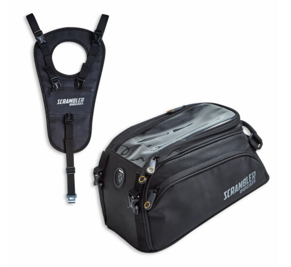 Accesorio hecho de material técnico y dotado de práctica fijación magnética para garantizar la máxima funcionalidad. De gran capacidad, permite llevar consigo todo lo necesario para los desplazamientos por la ciudad o un paseo por los alrededores. El diseño en perfecto estilo Scrambler otorga un toque adicional de carácter a la moto.