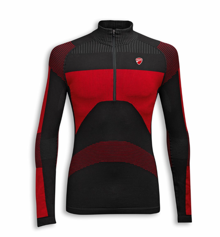 Camiseta técnica de mangas largas, diseñada por Drudi Performance, que representa la perfecta síntesis de confort, elasticidad y transpiración. Realizada de tejido Dryarn® de baja absorción, está dotada de zonas con una nueva confección de malla ancha, para optimizar la transpiración corporal y eliminar el calor en exceso en las zonas de mayor sudor. Las fibras de alta calidad de esta prenda garantizan un aislamiento térmico hacia el exterior, absorbiendo la humedad y el sudor antes de que entren en contacto con la piel. Confort y sensación perfectos, gracias también a las costuras reducidas y a las zonas reforzadas con diseño específico para el uso motociclístico, que aseguran una óptima vestibilidad y no limitan la libertad de movimiento. El aliado ideal para llevar debajo de la chaqueta en los períodos fríos, para disfrutar al máximo cada salida.