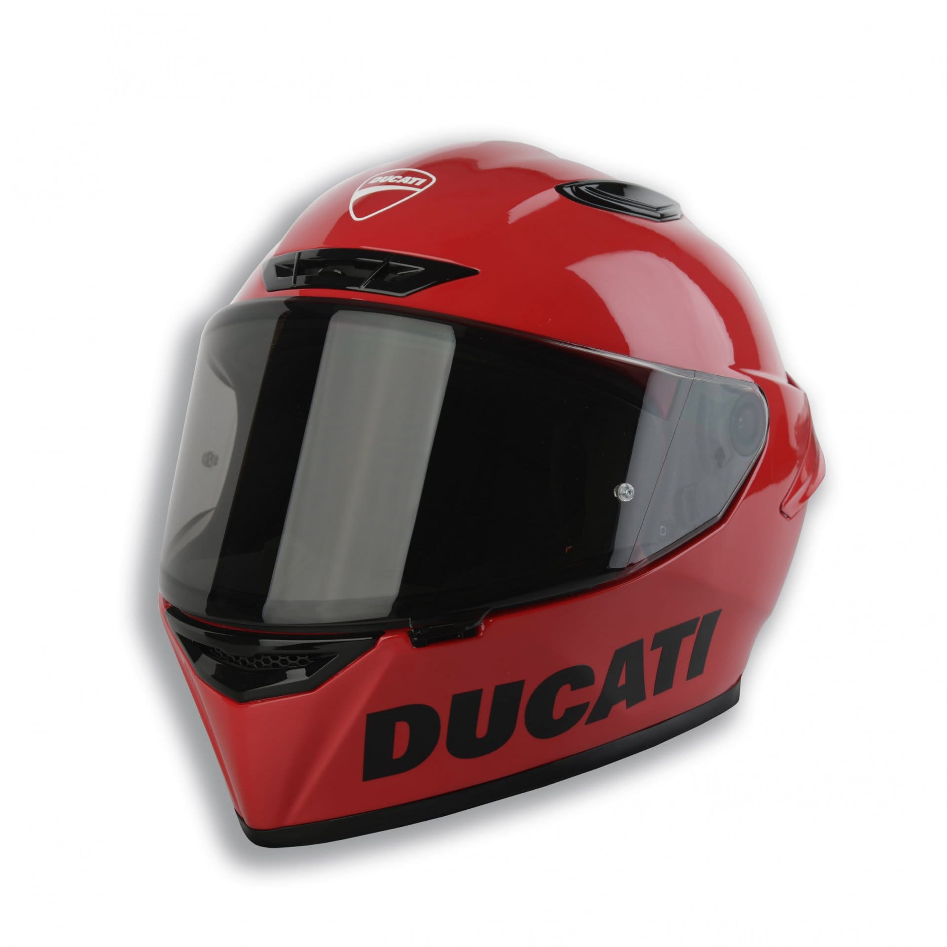 Ducati Logo es un casco integral ecléctico que se adapta tanto al uso urbano como al deportivo de carretera. La calota es de TRICARBOCO, una combinación de carbono y fibra pegado con resina, caracterizada por diferentes gramajes y cargas de rotura, unido a material compuesto de aramida, que permite crear una calota de peso reducido pero resistente a los golpes. La calota interior está constituida por poliestireno de densidad diferenciada estudiada para permitir una absorción gradual y progresiva de la fuerza de impacto generada por un golpe. El revestimiento interior es de tejido Hydrocool, ligero, suave y transpirable y está dotado de interiores y almohadillas laterales extraíbles, lavables y sustituibles. La visera de policarbonato PINLOCK Max Vision 70, en clase óptica 1, está dotada de bloque lateral para una mejor estabilidad; se puede extraer fácilmente mediante un práctico mecanismo que no prevé el uso de herramientas. Completan la dotación el cierre con correa D-ring y las tomas de aire que, con el sistema de ventilación, ofrecen un eficiente recambio de aire y favorecen bienestar y lucidez a la conducción. Las formas dinámicas del casco Ducati Logo combinan con un estilo sobrio, pero al mismo tiempo sorprendente. Las tres variantes de color, blanco Artic, negro dark y rojo Ducati, permiten combinarlo con el diseño y los acabados de la moto, creando un total look que no pasará desapercibido.