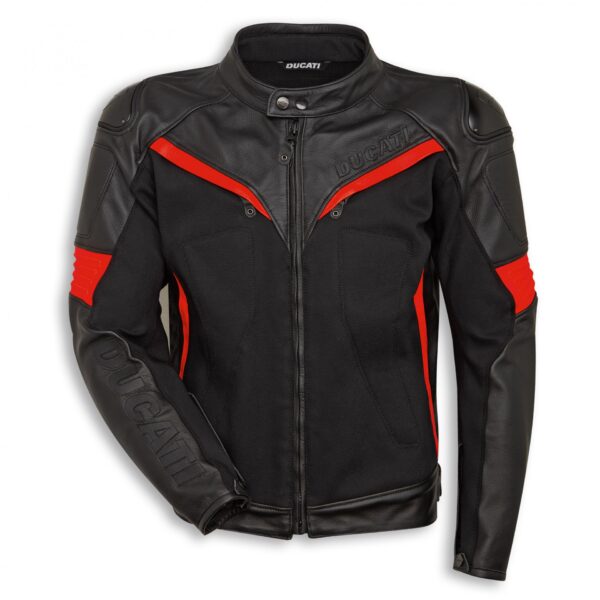 La chaqueta Fighter C2, producida por Dainese en exclusiva para Ducati, tiene un diseño moderno y agresivo que combina perfectamente con las protecciones negras de aluminio en los hombros y con los detalles en rojo fluorescente inspirados en el ADN deportivo de Ducati. Realizada de cuero vacuno suave y tejido elástico, Fighter C2 está dotada de tomas de aire en la espalda y en el pecho, cremallera de unión con los pantalones y está predispuesta para la introducción del protector de espalda (para comprar por separado). Disponible solo en la versión masculina, está completamente certificada CE según las normas europeas más recientes.
