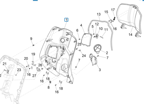 Contra escudo original Vespa, nuevo a estrenar. Pieza numero 1 de la fotografía. Color amarillo.