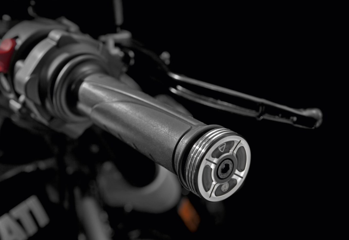 Pequeñas joyas de colores y refinadas que embellecen los extremos del manillar, fabricada en aluminio macizo. Detalles que marcan la diferencia. Diseño desarrollado en colaboración con Roland Sands Design.