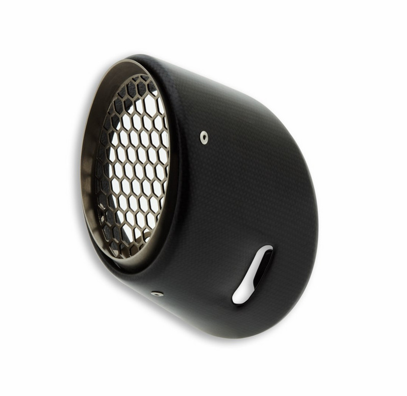 La red de titanio, de evidente inspiración MotoGP, además del look que solo el acabado de la fibra de carbono sabe dar, enfatiza aún más el estilo notablemente deportivo de la moto. Un accesorio exclusivo que acentúa la índole racing de la superdeportiva por excelencia.
