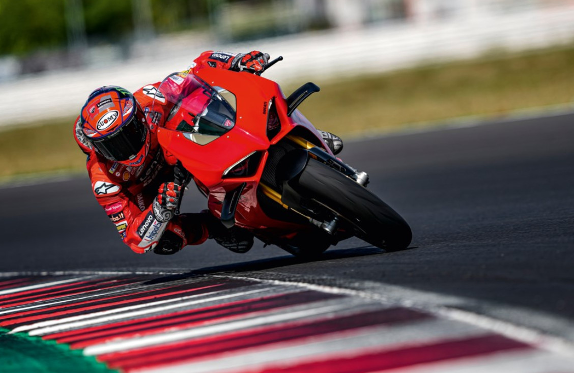 El Ducati Traction & Wheelie Control Evo 3 para neumáticos Racing ahora está disponible para la Panigale V4 MY22. Desarrollado junto con los técnicos de Ducati Corse para mejorar notablemente las prestaciones en pista, tanto con neumáticos slick como rain, en caso de lluvia. El EVO3 es una evolución ulterior del Ducati Traction Control caracterizada por una refinada estrategia, que deriva de Ducati Corse, pensada para que la reapertura del gas de salida en curva sea aún más fácil y previsible. En esta fase de conducción, normalmente puede suceder que al finalizar la recuperación de juegos de la “drive line”, se produzca un patinamiento involuntario y no previsto de la rueda trasera debido al pico de aceleración del cigüeñal, que molesta al piloto en el momento en el que está dosificando la reapertura del acelerador al máximo ángulo de inclinación. El nuevo software regula de manera predictiva el par de potencia erogado por la Desmosedici Stradale, calibrando la aceleración angular del cigüeñal para que la fase de recuperación del juego sea más fluida. Esto se traduce en un comportamiento más neutro en la salida de la curva con un mejor control y sensación de conducción para el piloto. Además, el piloto puede utilizar el acelerador para intervenir en el deslizamiento de la rueda trasera en mayor medida con respecto al nivel «normal», efectuando una palanca superior en la rueda delantera y cerrando la trayectoria de la curva. Por tanto, el sistema permite doblar con la rueda trasera, en condiciones de seguridad y con el riesgo mínimo de perder el control de la moto. Se puede utilizar con escape de serie y con escape Racing y se ajusta en 8 posiciones diversas (5 para pista seca y 3 para pista mojada y neumáticos Rain). En particular, los niveles 1, 2 y 3 del DTC EVO 3 permiten un grado de control de la moto que era accesible solo a los pilotos profesionales. Un software exclusivo, que permite al piloto adaptar la estrategia de control a su estilo de conducción y a las condiciones de adherencia, obteniendo las máximas prestaciones.