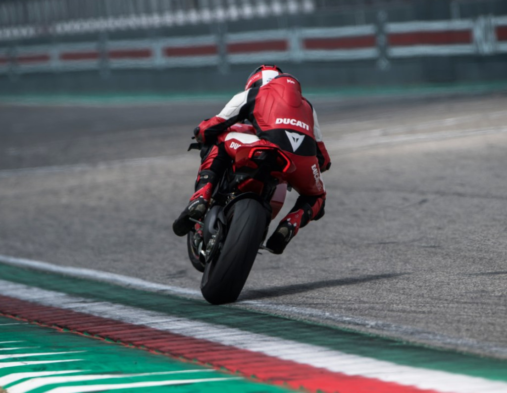 El Ducati Traction & Wheelie Control Evo 3 para neumáticos Racing ahora está disponible para la Panigale V4 MY21. Desarrollado junto con los técnicos de Ducati Corse para mejorar notablemente las prestaciones en pista, tanto con neumáticos slick como rain, en caso de lluvia. El EVO3 es una evolución ulterior del Ducati Traction Control caracterizada por una refinada estrategia, que deriva de Ducati Corse, pensada para que la reapertura del gas de salida en curva sea aún más fácil y previsible. En esta fase de conducción, normalmente puede suceder que al finalizar la recuperación de juegos de la “drive line”, se produzca un patinamiento involuntario y no previsto de la rueda trasera debido al pico de aceleración del cigüeñal, que molesta al piloto en el momento en el que está dosificando la reapertura del acelerador al máximo ángulo de inclinación. El nuevo software regula de modo predictivo el par erogado por la Desmosedici Stradale calibrando la aceleración angular del cigüeñal para dar mayor fluidez a la fase de recuperación de juegos, esto se traduce en un comportamiento más neutro en la salida de la curva con un mejor control y sensación de conducción para el piloto. Se puede utilizar con escape de serie y con escape Racing; ajustable en 8 niveles diferentes (6 para pista seca y 2 para pista mojada y neumáticos Rain), permitiendo al piloto adaptar la estrategia de control al propio estilo de conducción y a las condiciones de adherencia, obteniendo las máximas prestaciones.