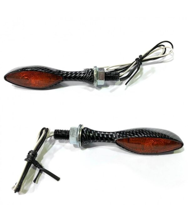 Juego de intermitentes Puig Eagle con acabado símil carbono. El pack incluye dos intermitentes, un juego de tulipas ámbar, un juego de tulipas ahumadas y un juego de tulipas láser.