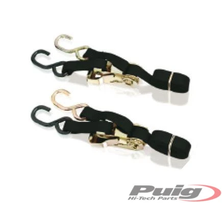 Puig ofrece en su catálogo un juego de cinchas de gancho crack-crack y unas cinchas para manillar universales, que permiten un ajuste perfecto en cualquier tipo de transporte y con los que se consigue la inmovilización completa de la moto.