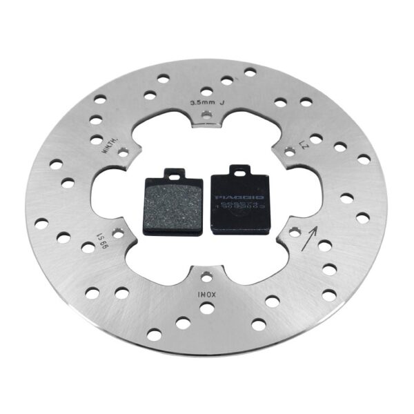 Kit freno delantero original Piaggio. Compuesto por disco de freno y pastillas.