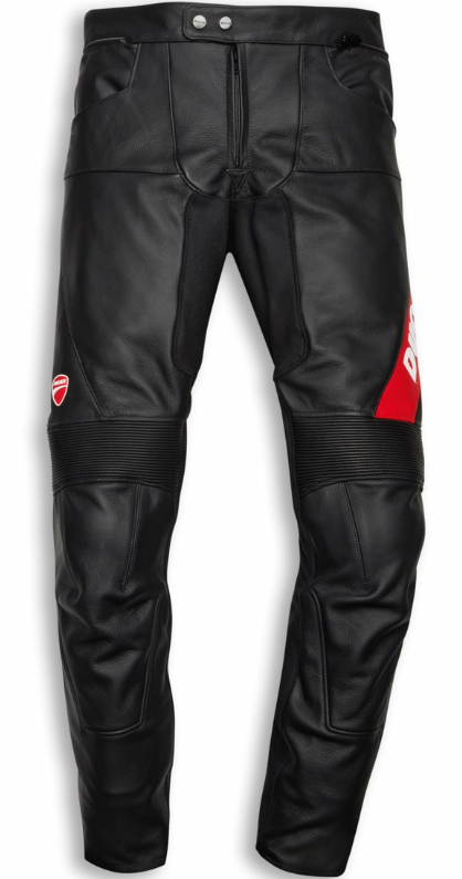Disfruta cada curva, con los pantalones de cuero Company C4 producidos por Dainese en exclusiva para Ducati y específicamente estudiados para un uso deportivo en carretera. Realizados de cuero vacuno suave y resistente, ofrecen una óptima libertad de movimiento. La seguridad de la prenda, certificada CE, es garantizada por las protecciones en la tibia y la rodilla y por los suaves refuerzos en la zona de la cadera. El forro de Nanofeel® y las aplicaciones elásticas en las rodillas maximizan el confort, mientras que la práctica cremallera permite la combinación con todas las chaquetas de la colección, dándole la máxima versatilidad. Disponibles en versión masculina y femenina, para garantizar una óptima vestibilidad a quien monte en la moto. Las aplicaciones rojas con logotipo Ducati en contraste completan el look esencial de esta prenda creando un estilo clásico y al mismo tiempo icónico: la prenda perfecta para disfrutar al máximo la diversión de la conducción deportiva, en perfecto estilo Ducati.