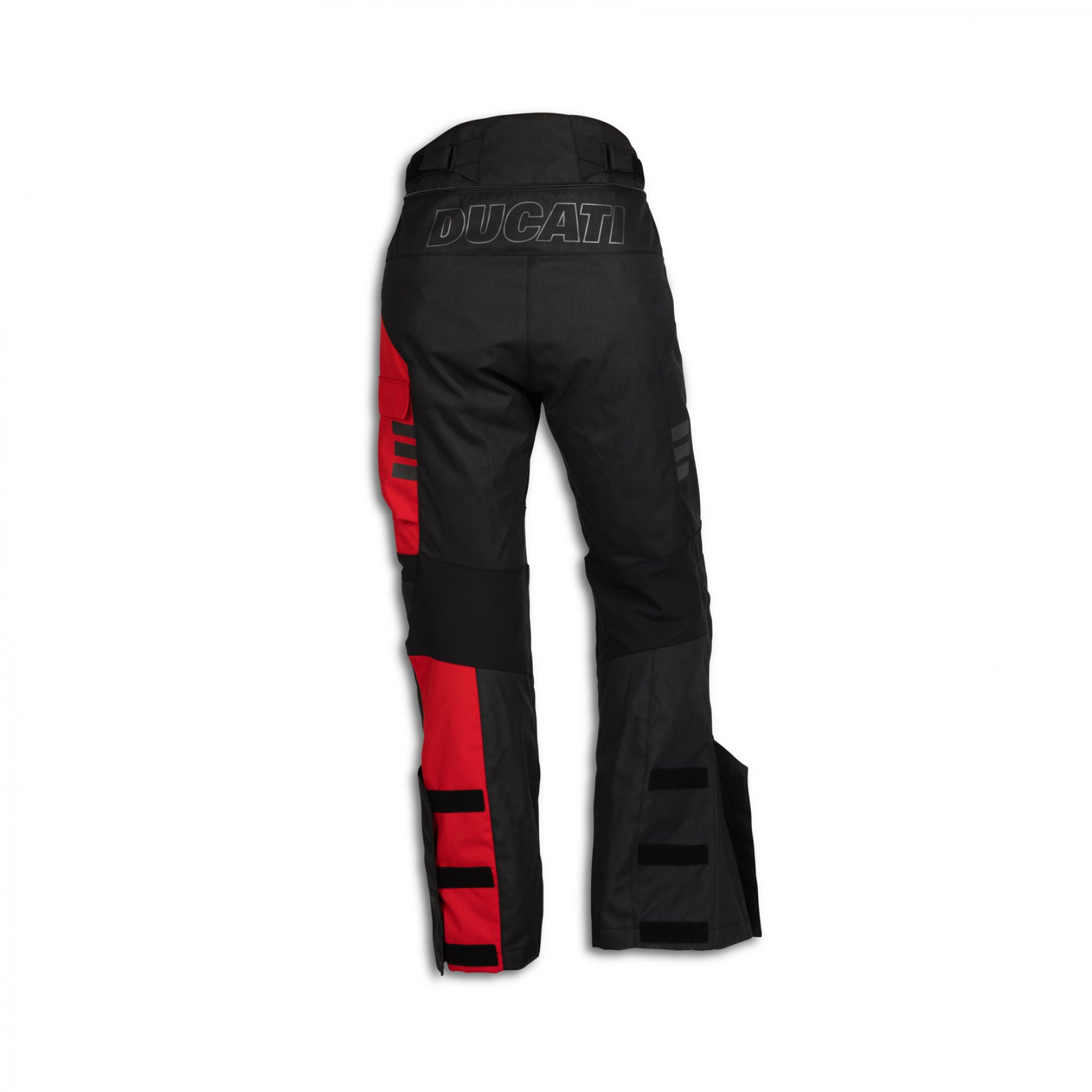 Diseñados por Drudi Performance y producidos por Spidi en exclusiva para Ducati, los pantalones Ducati Explorer, combinados con la chaqueta homónima, han sido estudiados para recorridos largos, para crear un conjunto de estética rally y características de touring-enduro. Para adaptarse a las diferentes condiciones meteorológicas, la prenda se configura como dos pantalones en uno: la capa externa, de tejido Cordura de elevada dureza, repelente al agua y resistente a la abrasión, se combina con una segunda capa extraíble dotada de membrana H2Out®, impermeable, rompeviento y, al mismo tiempo, transpirable. Las ventilaciones regulables en los muslos garantizan un óptimo confort térmico, mientras que el bolsillo lateral y las amplias regulaciones con triple Velcro™ en el bajo maximizando la practicidad de la prenda. Los pantalones presentan un diseño atractivo y asimétrico de bloques de color que combinan perfectamente con las ilustraciones gráficas de DesertX Rally y Multistrada, dando vida a un look audaz, perfecto para subirse a la moto y transformar cada viaje en emoción pura.