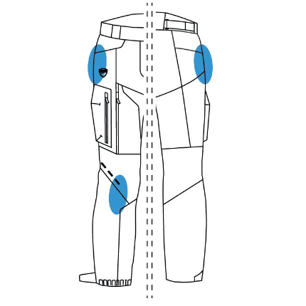 Confort: 100% impermeable. Aplicaciones elásticas en rodillas. Cierre cintura regulable. Amplitud de fondo ajustable. 2 tomas de aire laterales