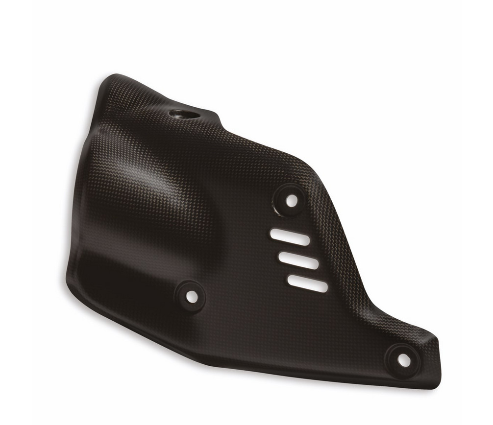 Protege de las altas temperaturas y conserva la estética racing en la Ducati Diavel con este protector de carbono .