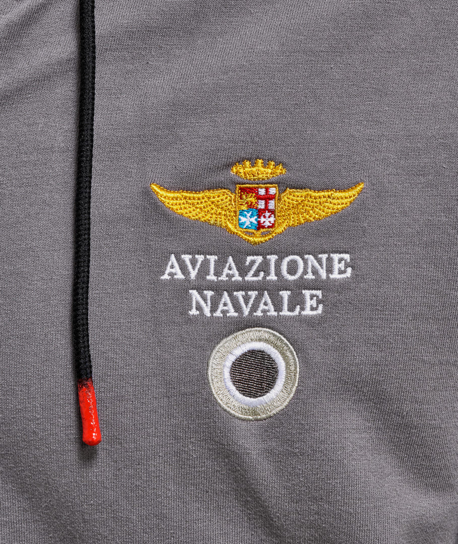 Esta sudadera en color gris oscuro, confeccionada en suave algodón French Terry, te ofrece toda la comodidad y el estilo que necesitas. Con el logotipo de la Aviazione Navale en el pecho, diseño minimalista y limpio, capucha ajustable y muchos otros pequeños detalles que elevan tu look a lo más alto.