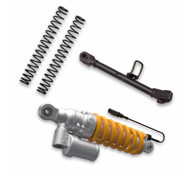 Set diseñado específicamente para bajar la moto 20 mm, compuesto por muelles horquilla, amortiguador trasero completo y caballete lateral. El set de accesorios perfecto para obtener el máximo confort sin renunciar al placer de conducción y disfrutar de una aventura a medida en la