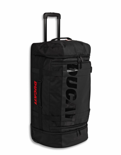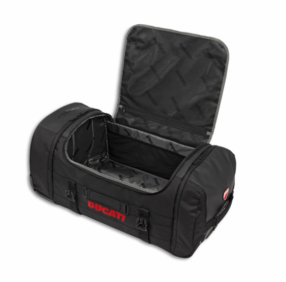 De la atención al detalle y el cuidado de la calidad que caracterizan Ogio y la marca de Borgo Panigale nace el trolley Redline T5 de gran capacidad. El volumen de 100 litros permite llevar consigo el propio equipamiento de la moto o preparar las maletas en perfecto estilo Ducati. Realizado de tejido de poliéster impermeable, garantiza la máxima resistencia, mientras que la estructura rígida optimiza la distribución de la carga. El forro personalizado con el diseño del desmo es perfecto para guardar incluso el equipo más delicado, gracias a la confección de gomaespuma integrada iFOM. La sólida asa telescópica y las grandes ruedas adecuadas a cualquier terreno facilitan el transporte, incluso completamente cargado. La excelente dotación técnica se completa con dos amplios bolsillos laterales, 4 asas y dos bolsillos interiores amplios de mesh elástico. El trolley está decorado externamente con personalizaciones sobrias pero distintivas, que combinan con otros artículos de la línea y dan un estilo especial a este accesorio.