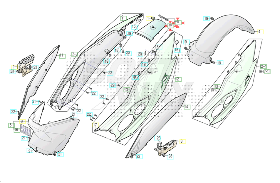 Unión tapas traseras original Daelim. Pieza numero 10 de la imagen.